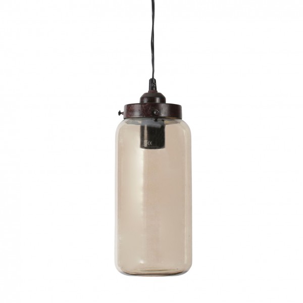 SUSPENSION LA HALLE FUME D11.5XH30CM VERRE+FER